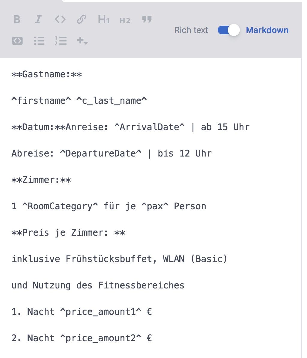 6). Go to the admin panel of email-generator, open the template you need, switch the editor from “rich text” to “markdown” mode, as shown below